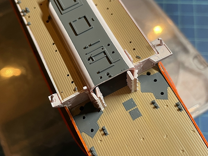 カットの後に接着したものを左右の二組製作し、塗装しました。