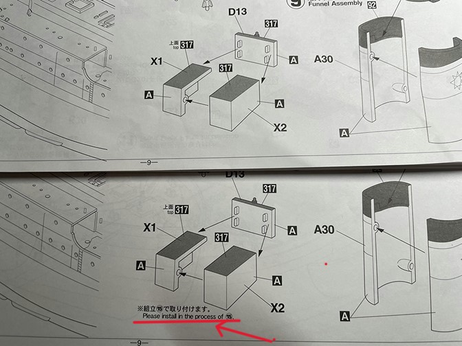 2月2日の投稿で実際とは形状が違うと記事で指摘していた部分の修正と塗装の指示が追加されていました。