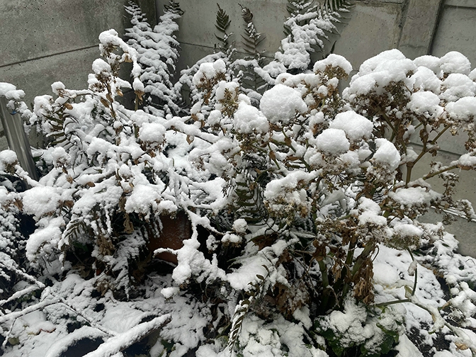 昨夕から雪がちらほらと降っていたのはわかってたのですが、非常に細かい雪で積もるまではいかないと思っていました。