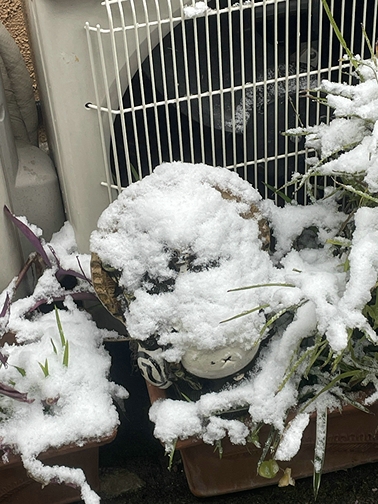 朝4時頃起きて外を眺めると数センチの積雪でした。
