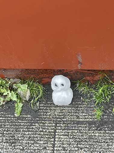 駅前の構造物の下に飾ってあった雪だるまも、溶け出してこんな感じになってました。