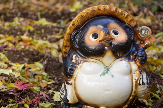 病院に行く途中にいる「信楽焼のたぬき」は雪が積もってもお腹をだした状態でした。