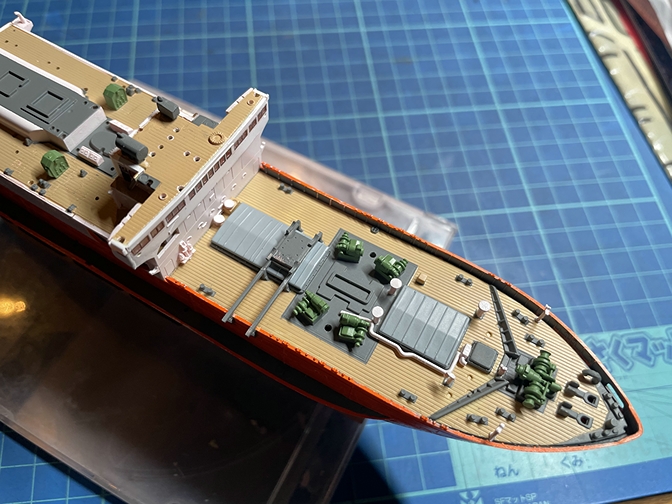 ハセガワ 1/350 南極観測船 宗谷 第二次南極観測隊 40066+エッチング QG20 ○○3日目 SHIP MODELS 2026.02.112026.02.12 今日は前方甲板上のホワイトに塗装するパーツの塗装と接着を行いました。 左からC4,C3,C2,K19×2,K16×2,L10,L11,G16,C13です。 少しずつ前部甲板が充実してきました。 9981