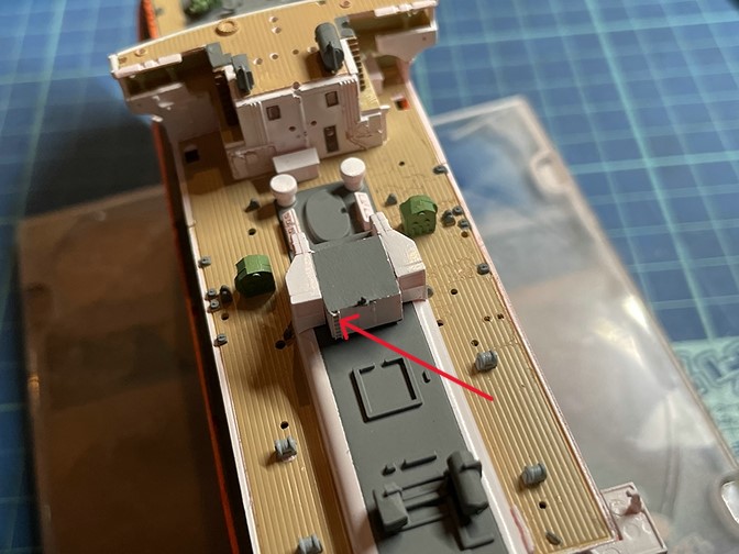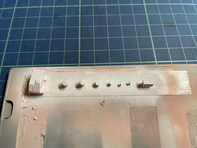 今日は昨日に続き、前方甲板と中央構造物に接着するホワイトで塗装するパーツ類です。