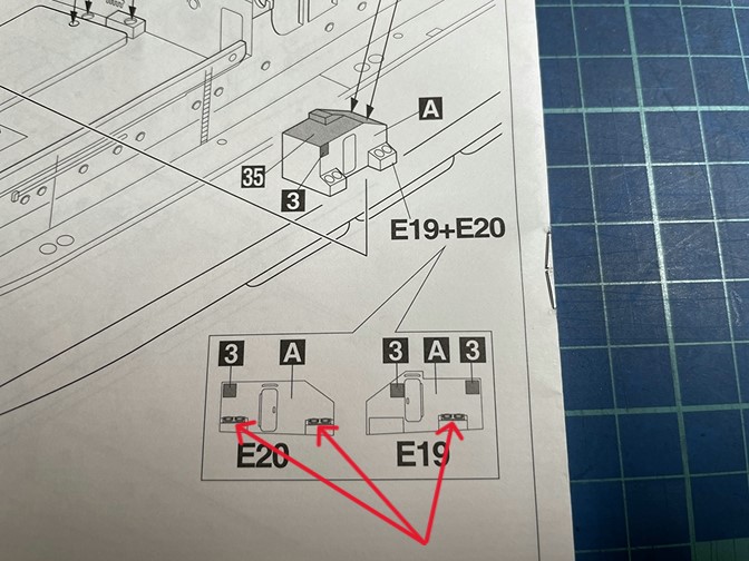説明書の塗装番号3で塗装する部分は0.3mmのプラバンに置き換えたほうが良いのではないかと考え削り取っています。