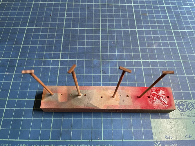 階段はホワイトを吹いたあとに、階段裏をマスキングしてウッドブラウンを吹くという手順なので結構時間がかかります。